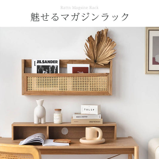 [賃貸OK]天然ラタンマガジンラック幅80cm