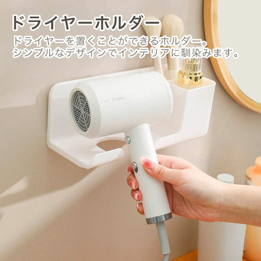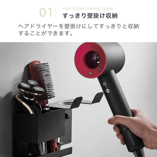 [石膏ボード壁対応] 収納付きドライヤーホルダー