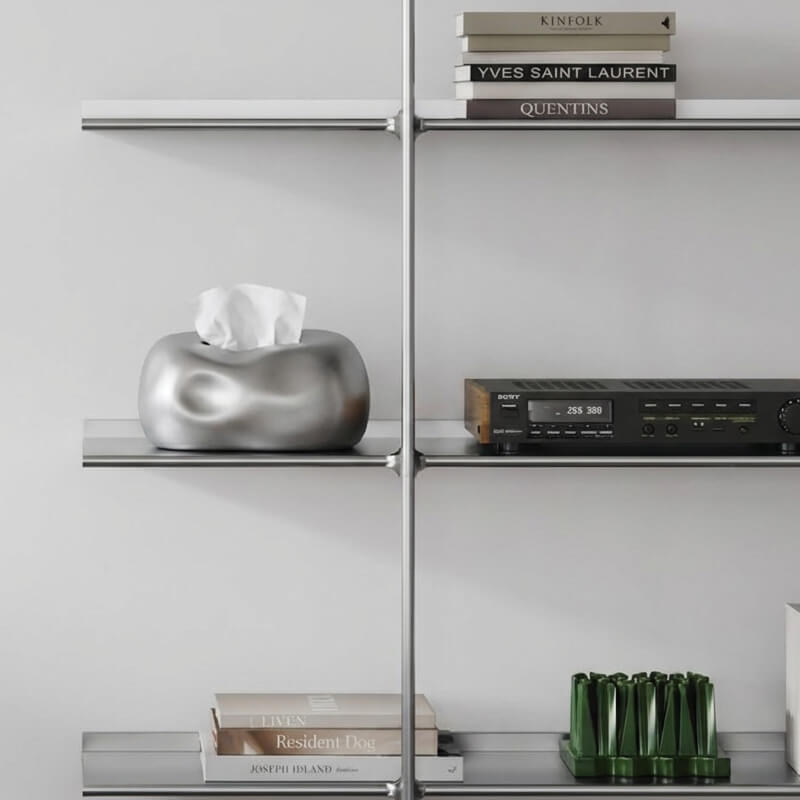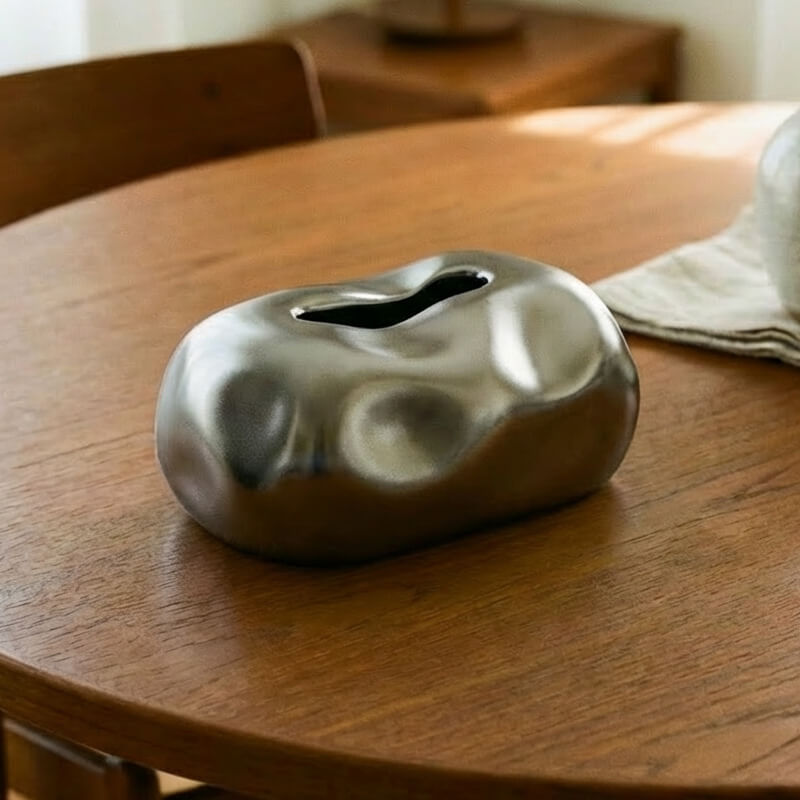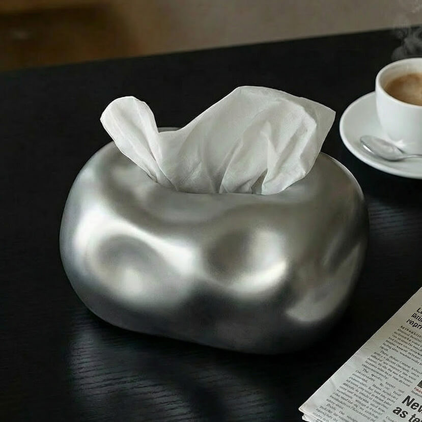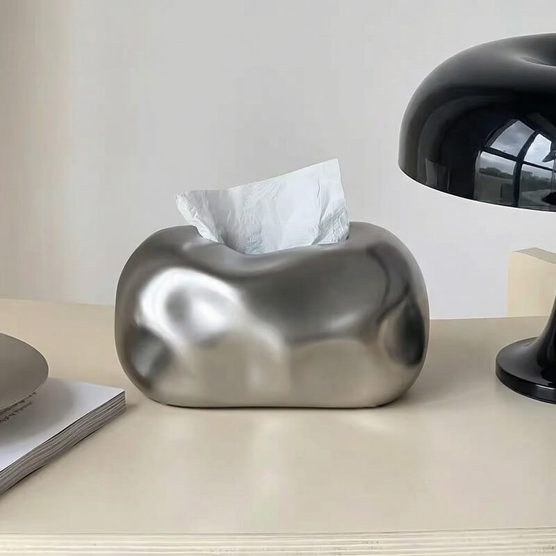 くしゃっと崩れた形がアートライクなシルエットのティッシュケース。