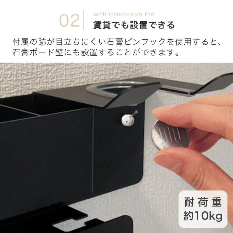 石膏ピンがしっかり支える耐荷重10kgなので、安心してご使用いただけます。