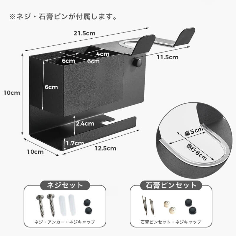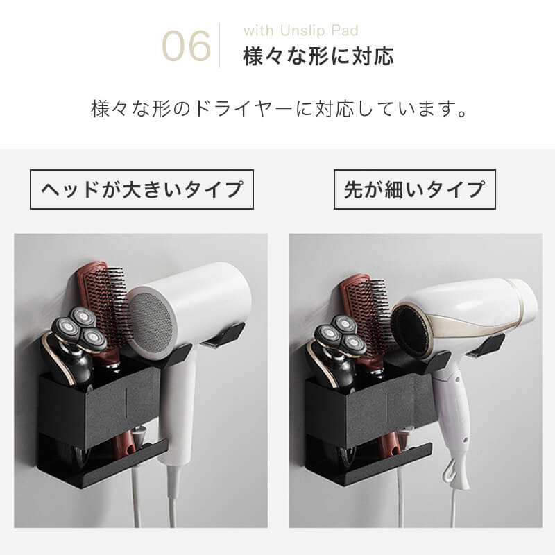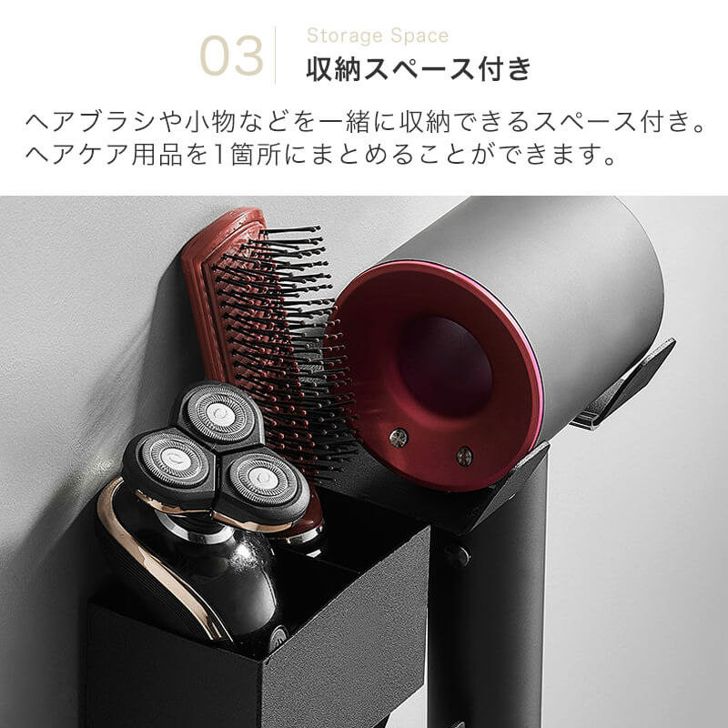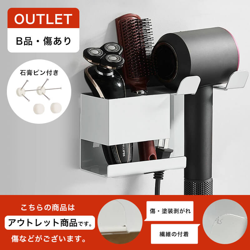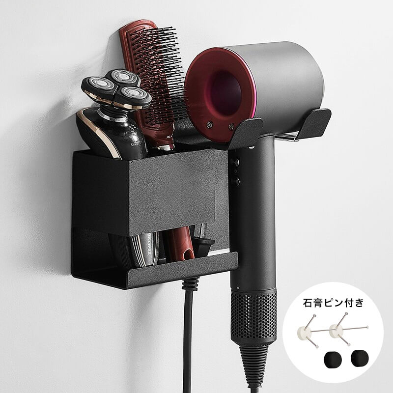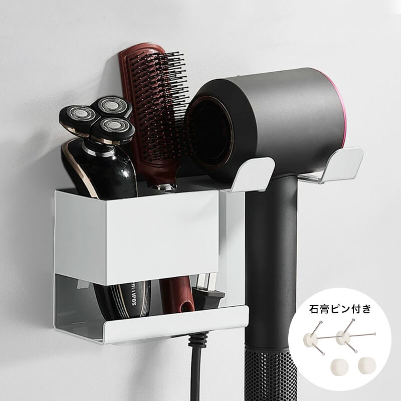 [石膏ボード壁対応] 収納付きドライヤーホルダー