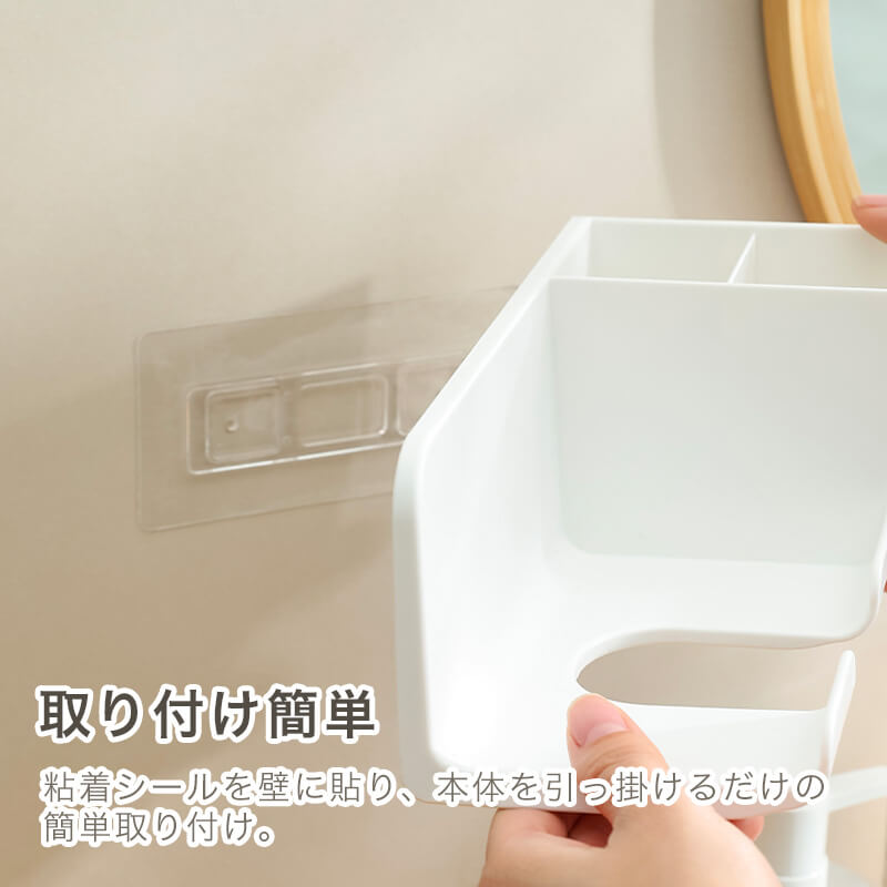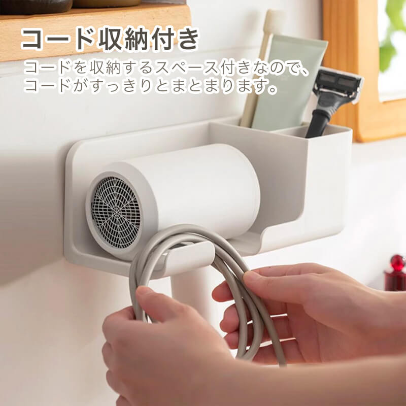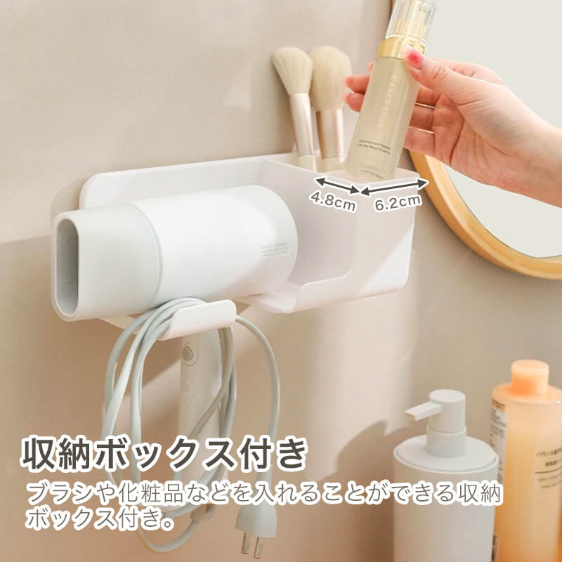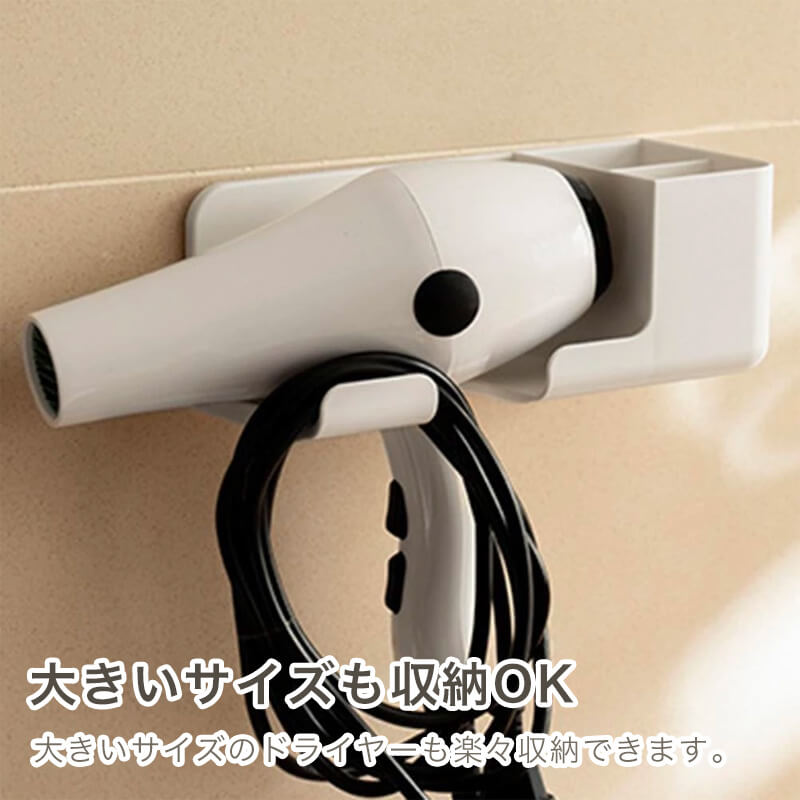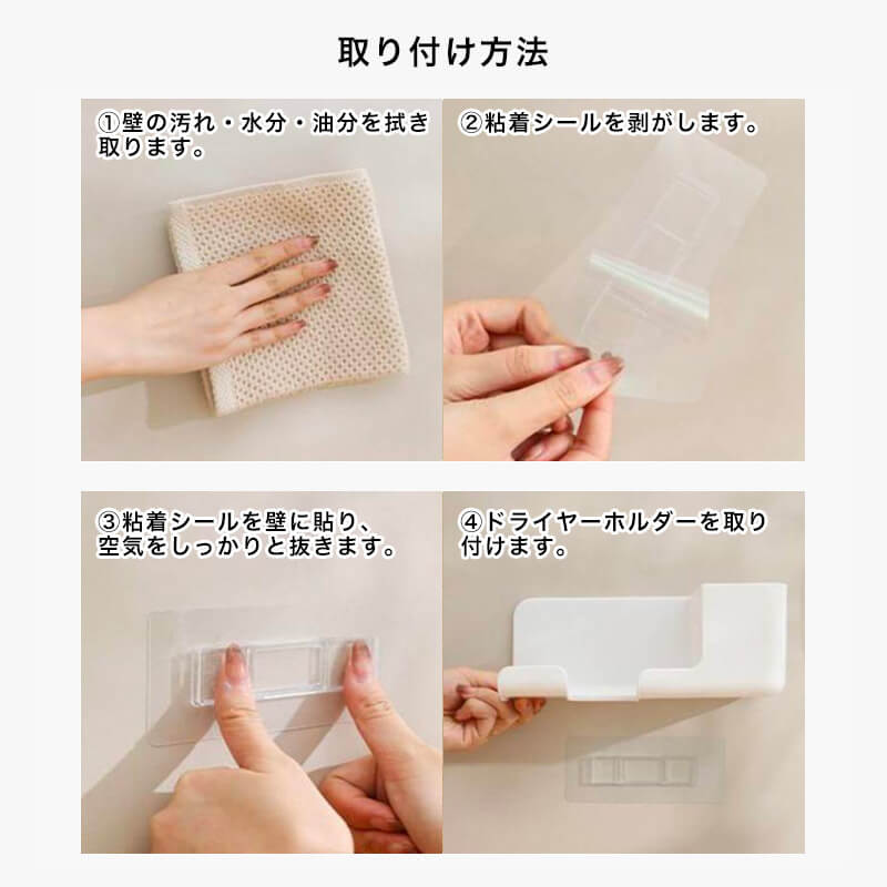 ツルツルとした壁に取り付けることができるドライヤーホルダー。